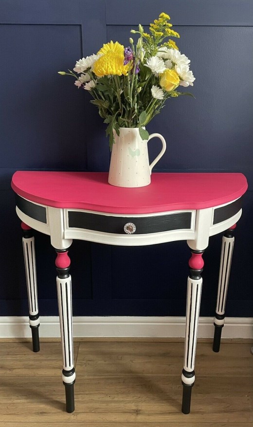 Not one to be satisfied with not being able to contribute to the family, I raided my garage for furniture still awaiting a makeover and inspired by the bold colours and styles of the nail art and the hundreds of nail art inspiration pins I had saved on Pinterest, I started painting in a more modern, bold and colourful style. Sometimes it can be the furniture itself that inspires me, especially if it has carvings, trims, or different sections.