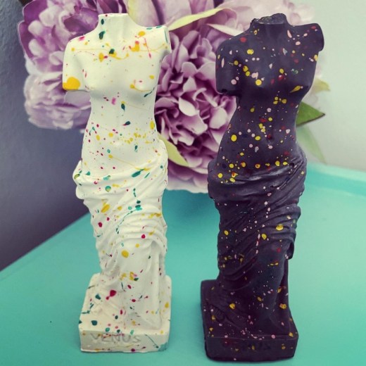 Then I came across a mould for Venus, the goddess of love, and I really admired the classic style and the fact that I could modernise what is essentially a miniature representation of ancient sculpture with a splash of colour, or paint, or shiny foil leaf. Most of my customers are female and they have always been my intended target audience as I believe women are generally more appreciative of handmade items and small businesses.